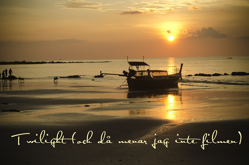 Jag ska snart ge mig med beachbilder, men inte riktigt än. Den bästa tidpunkten på dygnet måste ju vara twilight, eller blå timmen som jag tror att det heter på svenska. Precis efter det att solen gått ner tills det att det blir becksvart. Det är iallafall min favorittidpunkt på dagen. Strax efter den här bilden.Det går fort, på några minuter. Allting blir till guld, man tappar andan för en stund. Vill frysa tiden.men det är ju också det som är det magiska, att det är så förgängligt.man kan passa på att flyga fram litegrannLjuset ändrar sig hela tiden, ömsom guld, ömsom rött, ömsom blått. Det är fantastisk.Det finns faktiskt ingen stund på dagen som kan mäta sig med denna stund, och får man chansen att uppleva dessa guldstunder så ska man ta dem.Säga vad man vill om 80-tals solnedgångar, men av någon anledning så samlar jag på dem.Puss på er!