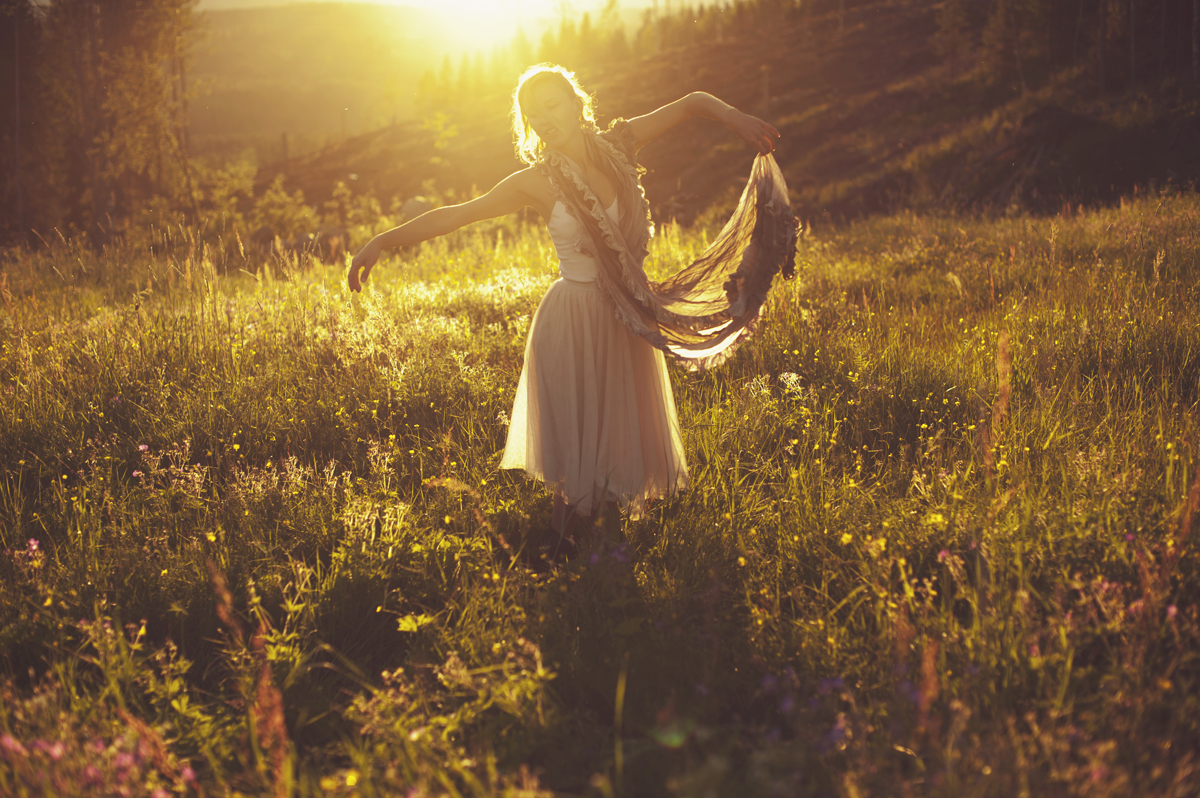 Så passar hon på att dansa lite på svenska sommarängar och vara min musa