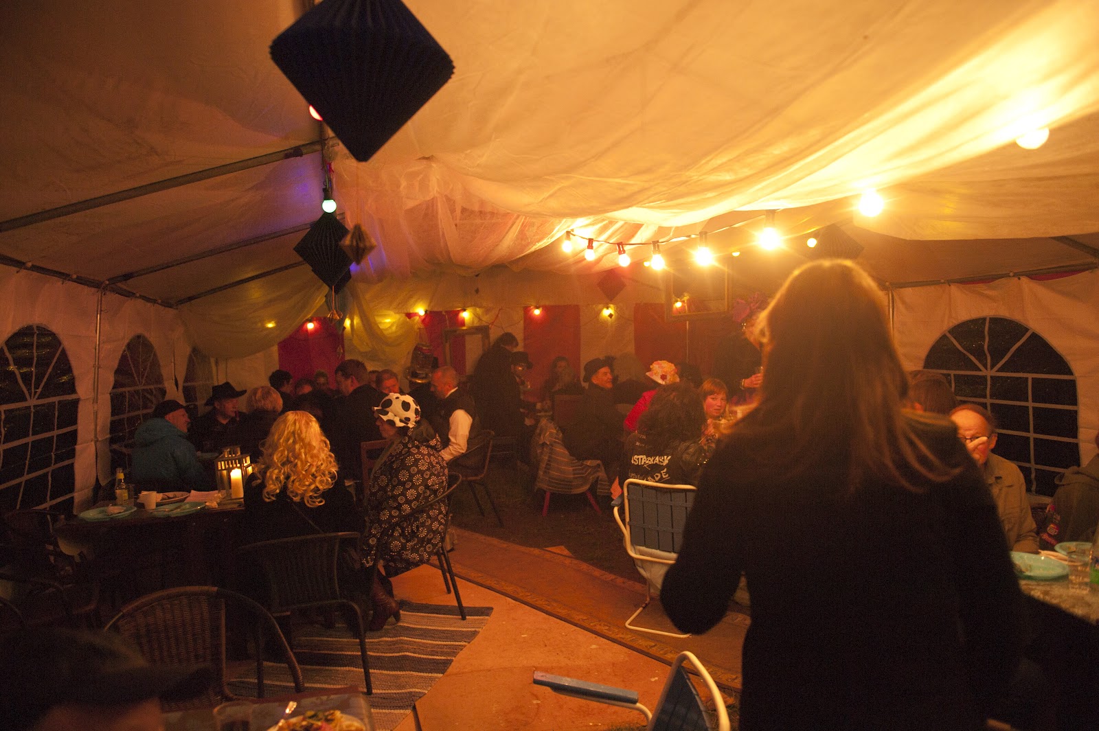 och vi hade middagen i tältet. Sen var det frågesport i lag och musikquizz och kaffe och avec…