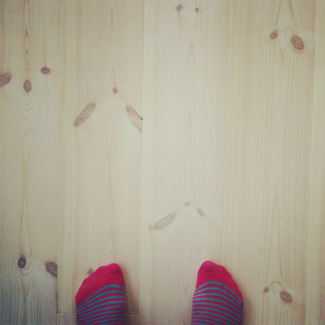 Allt golv lagt. Vitt hårdvaxat trägolv i hela huset förutom i biblioteket och garderoberna där vi har sparat det knaggliga och kuperade 1800-tals golvet. Det nya golvet har breda tiljor och är mjukt som sammet att gå på. Ljuvligt.