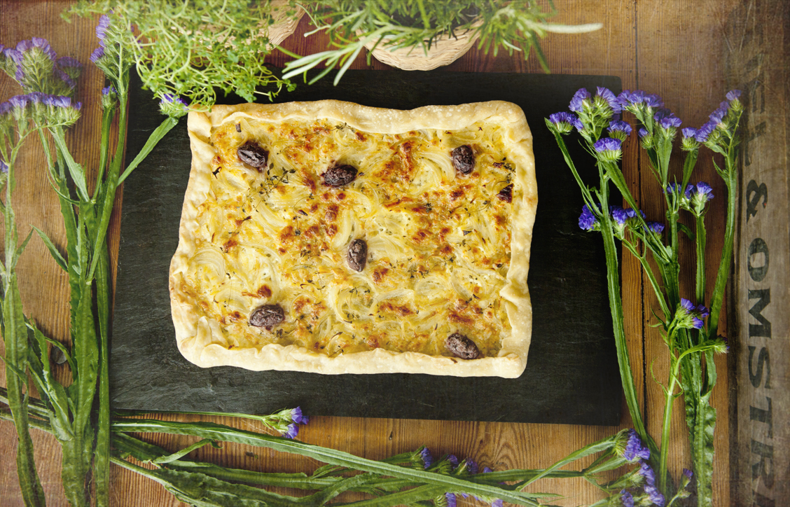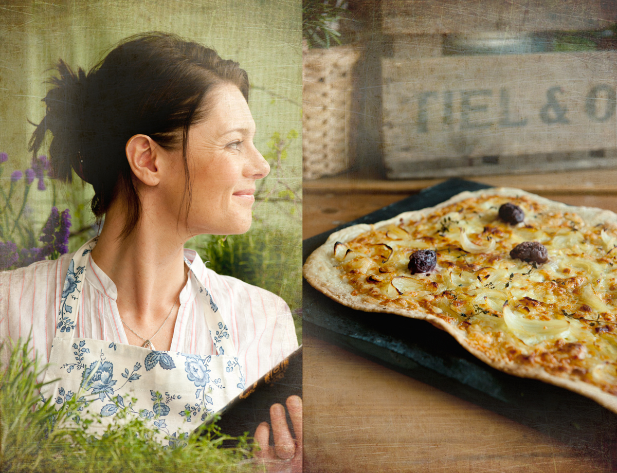 Här presenterade hon Pizza Alsace för mig, eller Tarte Flambée som den också brukar kallas.Pizza Alsace ska vara lövtunn. Den har inte tomatsås utan är istället baserad på creme fraice och lök. En riktig delikatess. Bibbi stenugnsbakade den enkelt genom ett helt enkelt låta den bakas på en sten i ugnen.