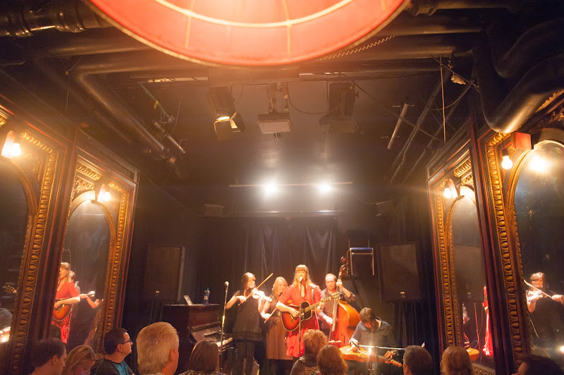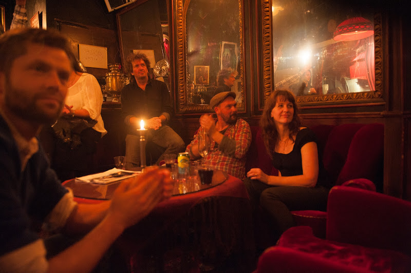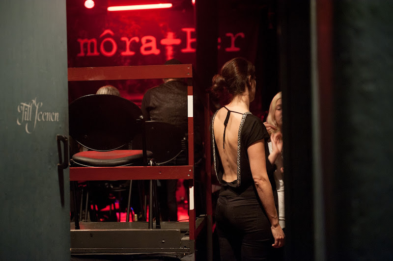 Vi skulle ju inte kunna åka till Stockholm bara sådär utan anledning, näe, om vi ska ta oss ända till den kungliga hufvudstaden måste det bjudas på något extra, och det gjorde det. Om man gick nerför en trappa i vackra Vasastan kom man till teaterstudion Lederman och det stället gjorde mig alldeles stum. Vilket dekadent, förföriskt och vackert ställe.Tunga, röda plysch och -sammetstyger. Guldspeglar och vackra lampor.och på den lilla scenen inne i salongen stod bluegrassbandet Lily Mountain Band (från Karlstad)och sångerskan Lovisa var så vacker i sin röda klänning och sitt långa hårsvalloch gick man sedan genom en grön entré kom man till scenenoch där skulle vårt favoritband snart äntra scenenoch det gjorde de med bravur.Världens i särklass bästa band môra-Per hade en unik Stockholmsspelning, och eftersom jag och Jögga är deras största fans var vi givetvis tvungna att följa dem ända hit (vi skulle nog kunna följa dem ända till Indien om det vore så. Vi älskar dem högt och innerligt)och det var så fint. Vi fick höra vackra skymningsland och historien bakom Brev till en vänoch som vanligt börjar mitt hjärta brinna när de spelaroch miljön var så passande och intim och blodröd och vinet var så fint enkeltvi satt kvar länge efteråt och pratade om tiden och minnen och barndom och det sköra i livetoch sofforna var så mjuka och atmosfären så mystisk och jag bara väntade på att Strindberg skulle dyka upp och bjuda på ett glas absinthoch här är jag.Så hängde vi med våra idoler tills klockan var 03 på morgonen.Tack Pärra E, Pärra Z, Hans, Magnus, Lena och gästartister för en grym spelning! -
