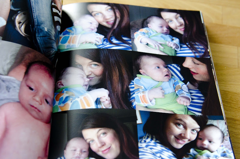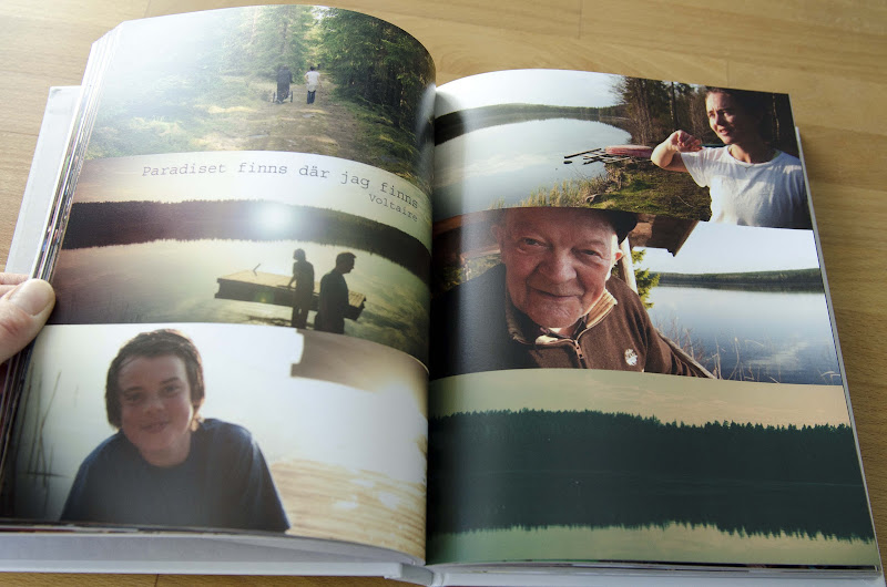 En gång i Frankrike träffade jag en kvinna som hade gjort böcker till sina barnbarn. Varje barnbarn hade en sisådär 10-12 böcker om sitt liv från det att de var nyfödda. Mormorn hade klistrat in biljetter, teckningar, bilder, fotografier..ja, det var otroligt fina små inspirerande verk i tjocka pärmar, och barnbarnen älskade att bläddra i dessa.Visst var det scrapbooking, men hon hade startat med det här redan på 50-talet till sina egna barn långt innan scrapbooking var uppfunnet, och det som var så häftigt var att hon var så konsekvent i sitt boktillverkande. Hursomhelst lovade jag mig själv att göra detsamma om jag själv någongång skulle få barn, och nu har jag hållit det.I mellandagarna tillverkade jag en bok om Viggos första år. Det blev 190 sidor, otroligt svårt att välja men väldigt roligt att göra. Nu gäller det bara att hålla i, att få till en bok för varje år.Jag snodde en idé från min vän Fredrik Ödman och scannade in en hårtuss.Sedan är det sida upp och sida ner med händelser från hans första år.och även denna bok är gjord på blurb som jag så varmt rekommenderar. -