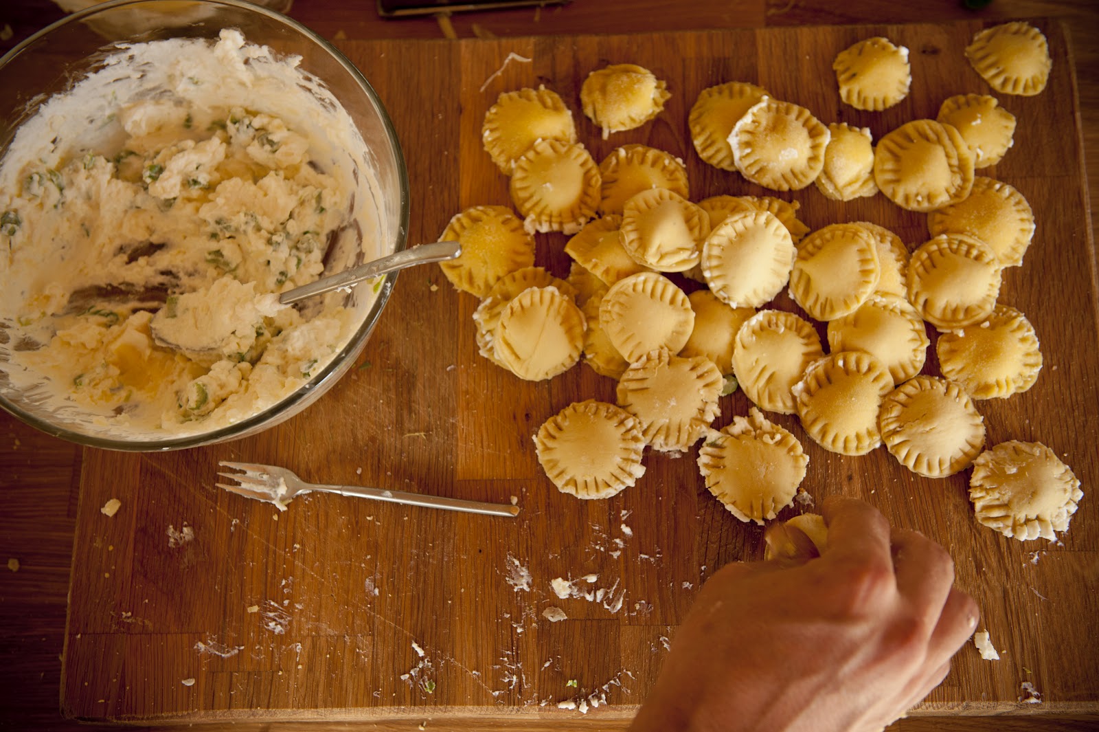 om ni ska laga panzerotti som vi gjorde behöver ni nån fyllning. Vi improviserade och använde cheddarost, ricotta och färsk sparris
